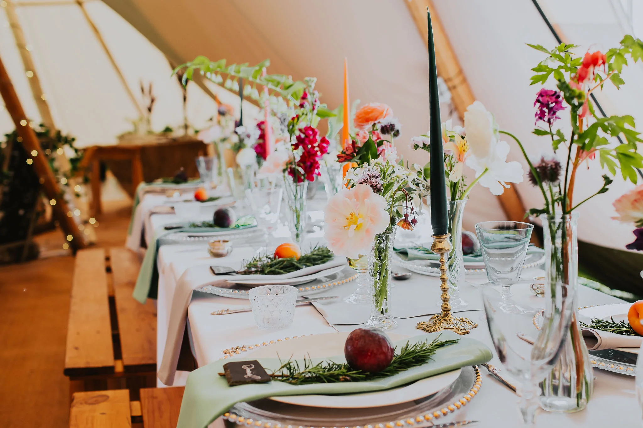 Kayleigh of The Flower Hub uses mainly local growers and British flowers so ensures they do not come with the carbon footprint of hundreds of air miles. Here’s her beautiful and vibrant styled table.